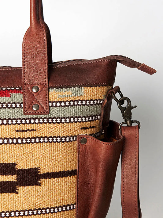Patchwork Embossed Brown Leather Tote Bag - Tooled Handle & Strap Western Satchel
