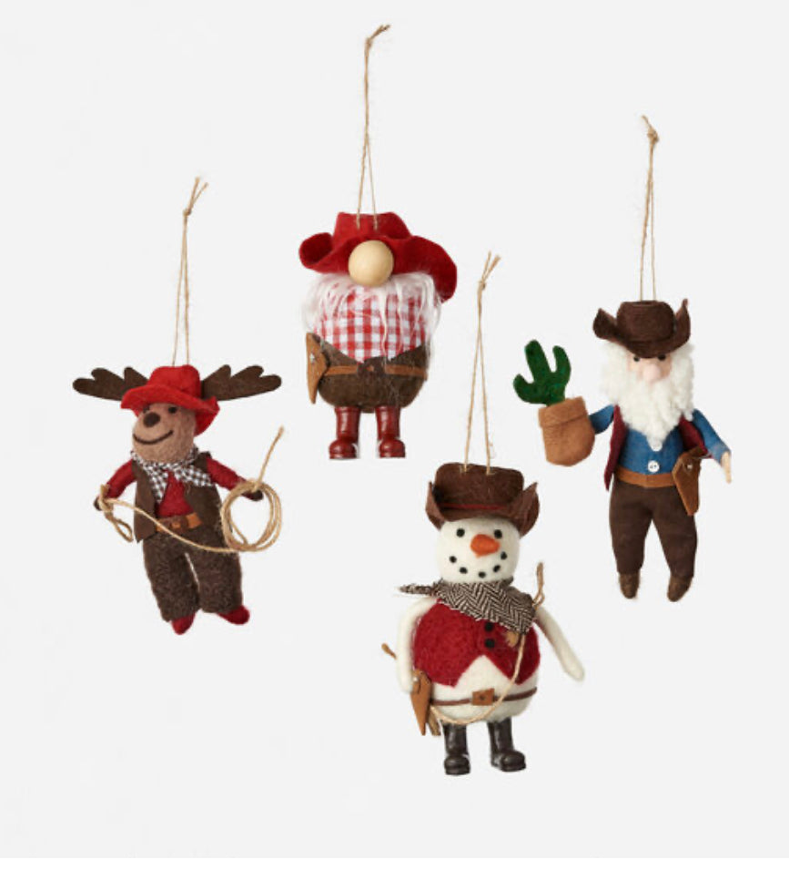 Cowboy, Snowman, Deer, Gnome Wool Ornaments