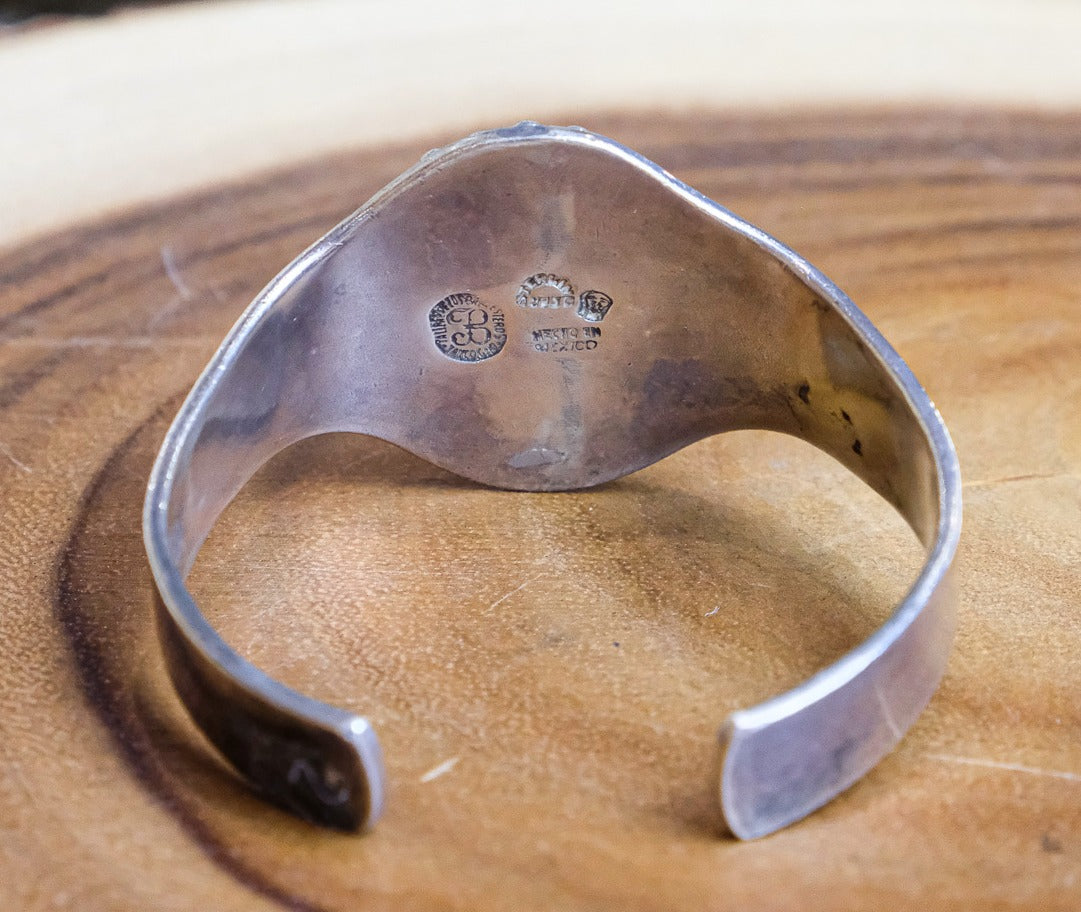 Green Oval Stone Sterling Beaded Cuff