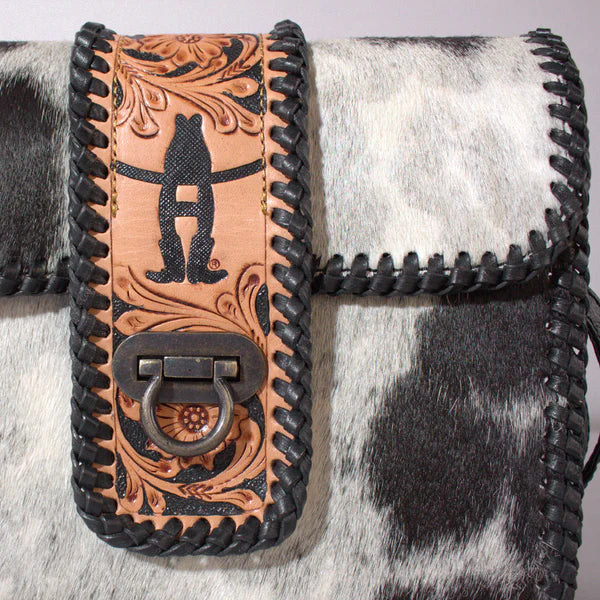 American Darling Laurel Rodeo Genuine Handtooled and Hair on Leather Crossbody Bag